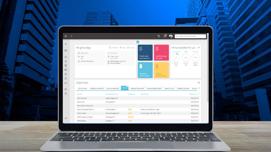 Mäklarsystem och CRM-system i ett och samma system. All data samlad på samma ställe. Oslagbart!