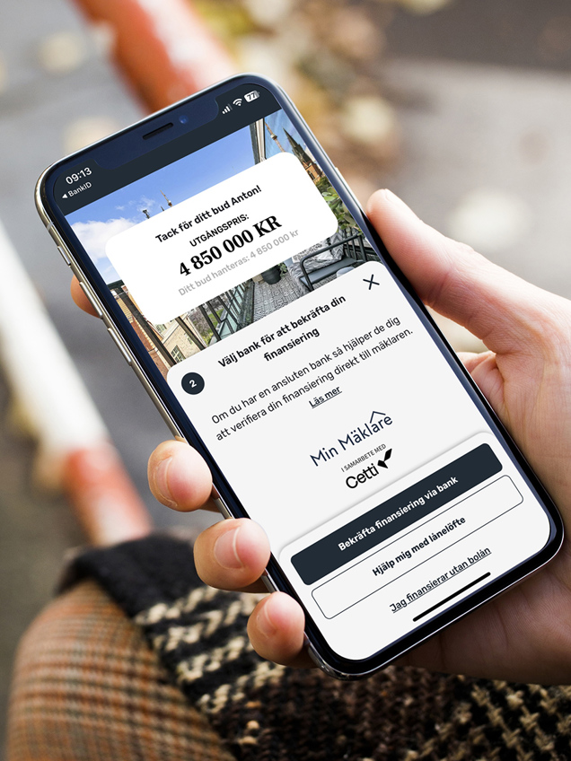 Med hjälp av den smidiga funktionen ”Verifierad finansiering & ID” som ingår i Express Mäklarsystem, kan du som mäklare verifiera en potentiell köpares finansiering och identitet utan att starta en budgivning. Genom att använda knappen ”Verifiera finansiering & ID” aktiveras även den proaktiva banksupporten som gör att ni får en snabb hantering vid godkännande av bostaden inför avtalsskrivning.