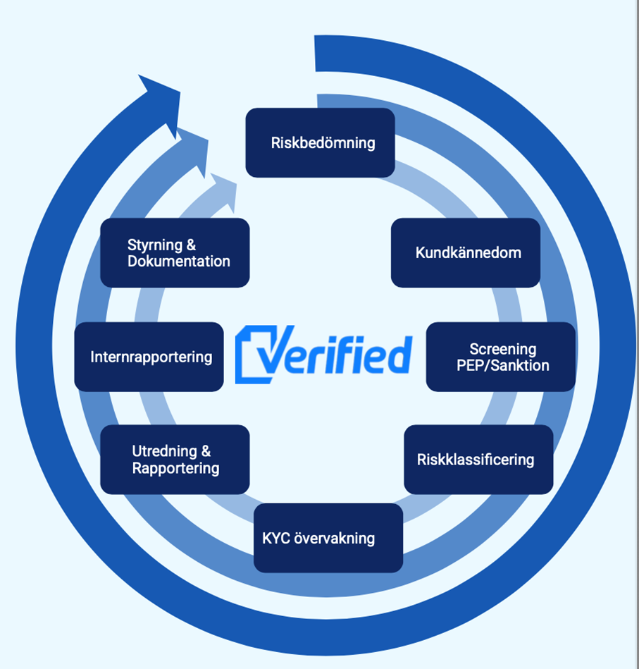 Tjänsteleveransen består av en initial workshop tillsammans med Verified med genomgång av interna roller, framtagande av allmän riskbedömning, basuppsättning av formulär för kundkännedom med mera. Årligen kommer det sedan ske uppdateringar av ovanstående samt löpande utbildningar.